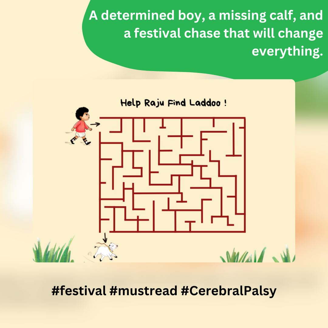 It’s a children’s illustrated book about Raju, a boy with cerebral palsy, and his beloved calf Laddoo, set during the Maatu Pongal festival. When Laddoo runs away, Raju shows that determination and individuality can save the day.